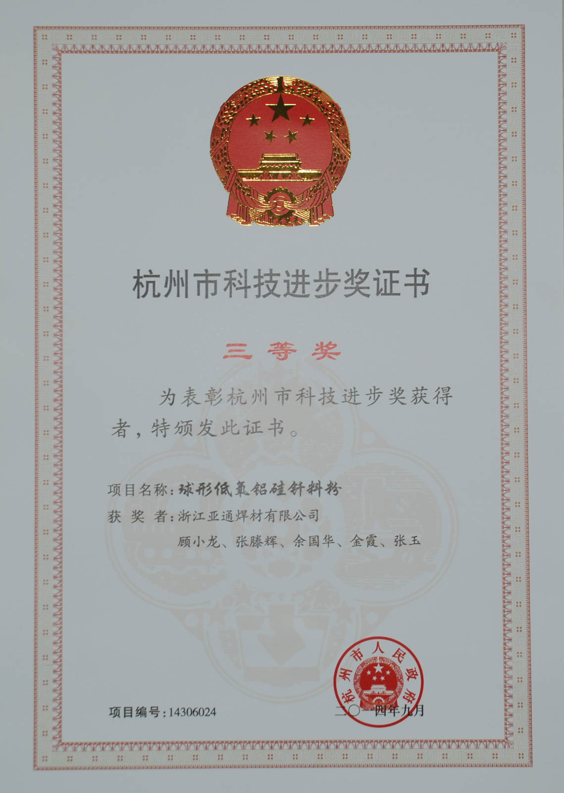 2015年6月,浙江亞通新材料股份有限公司企業技術中心由省經信委、省財政廳、省國稅局、省地稅局和杭州海關等5部門聯合認定為省級企業技術中心。
