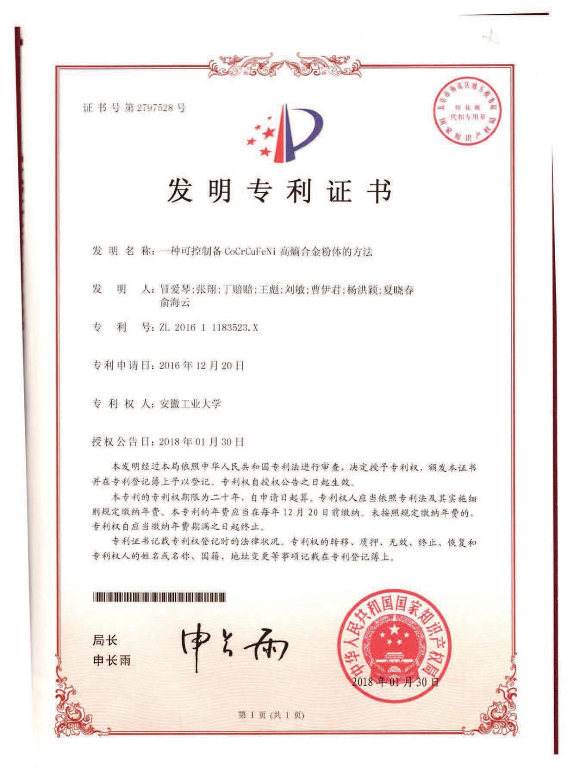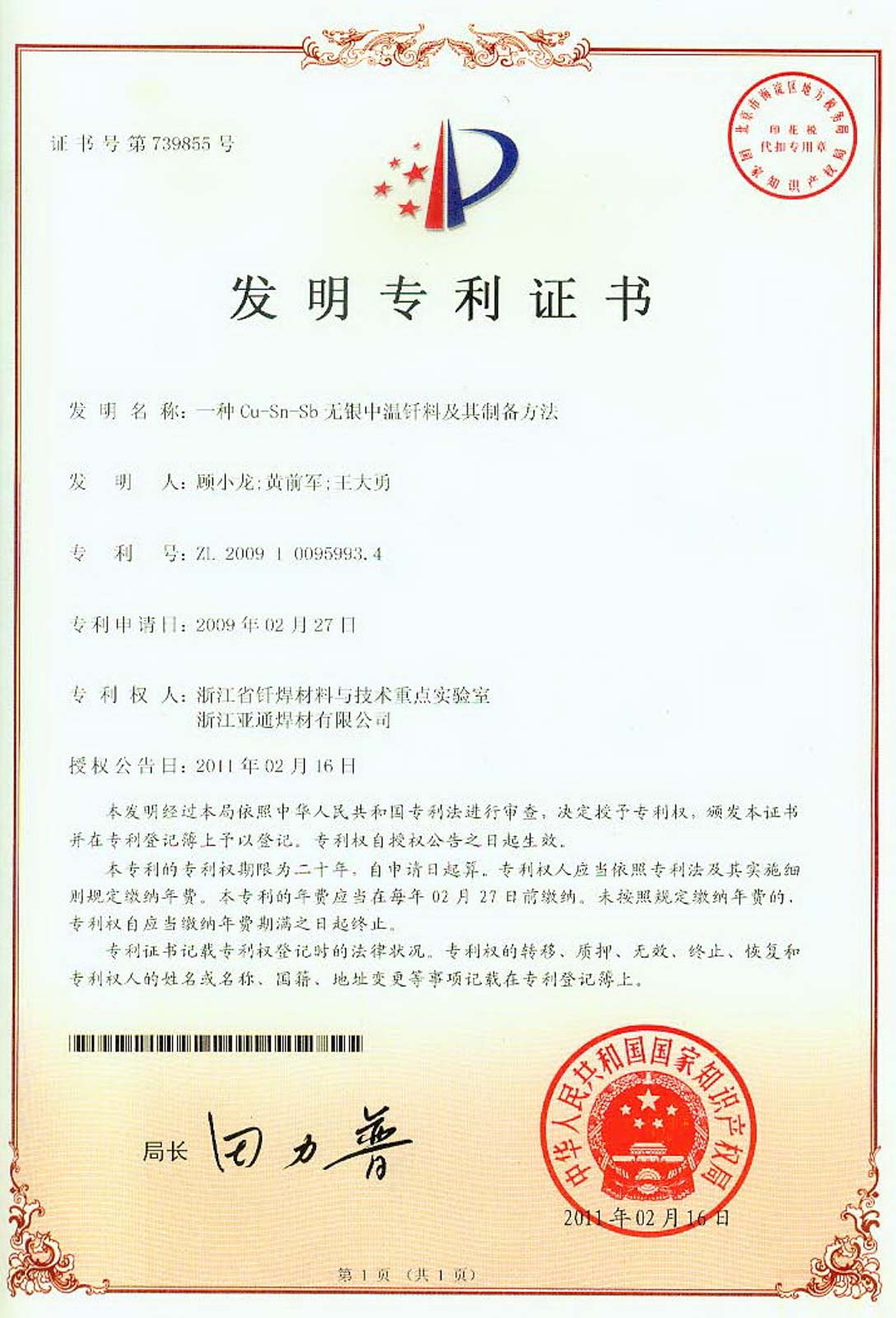 團隊開發的新型無鉛釬料不僅打破了國外無鉛釬料知識產權壁壘,很好地解決了現有無鉛釬料存在的諸多缺陷,并參與制定了3項國家標準及4項行業標準的制訂,同時獲得5件國家發明專利。在我國研制發射的神舟六號、七號飛船回收系統中,90%的焊錫材料是由該團隊研制生產。