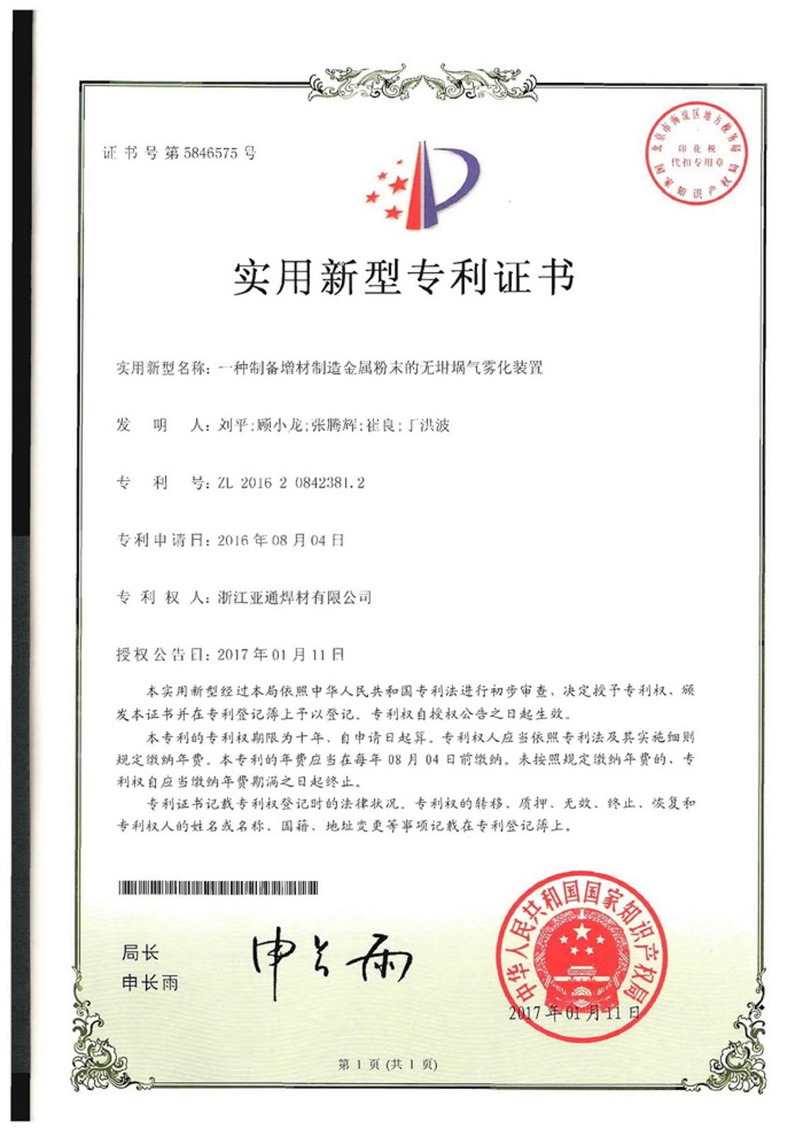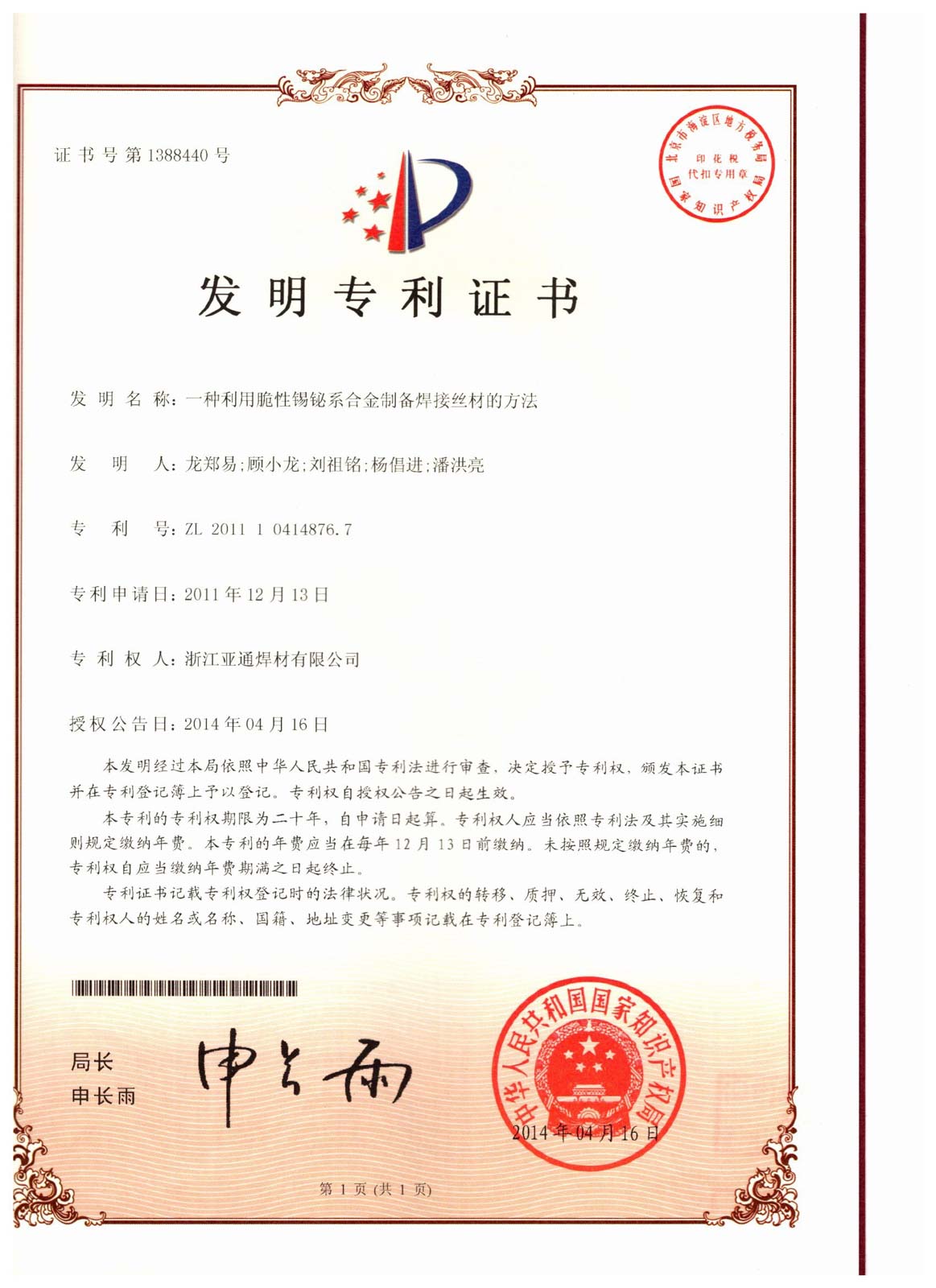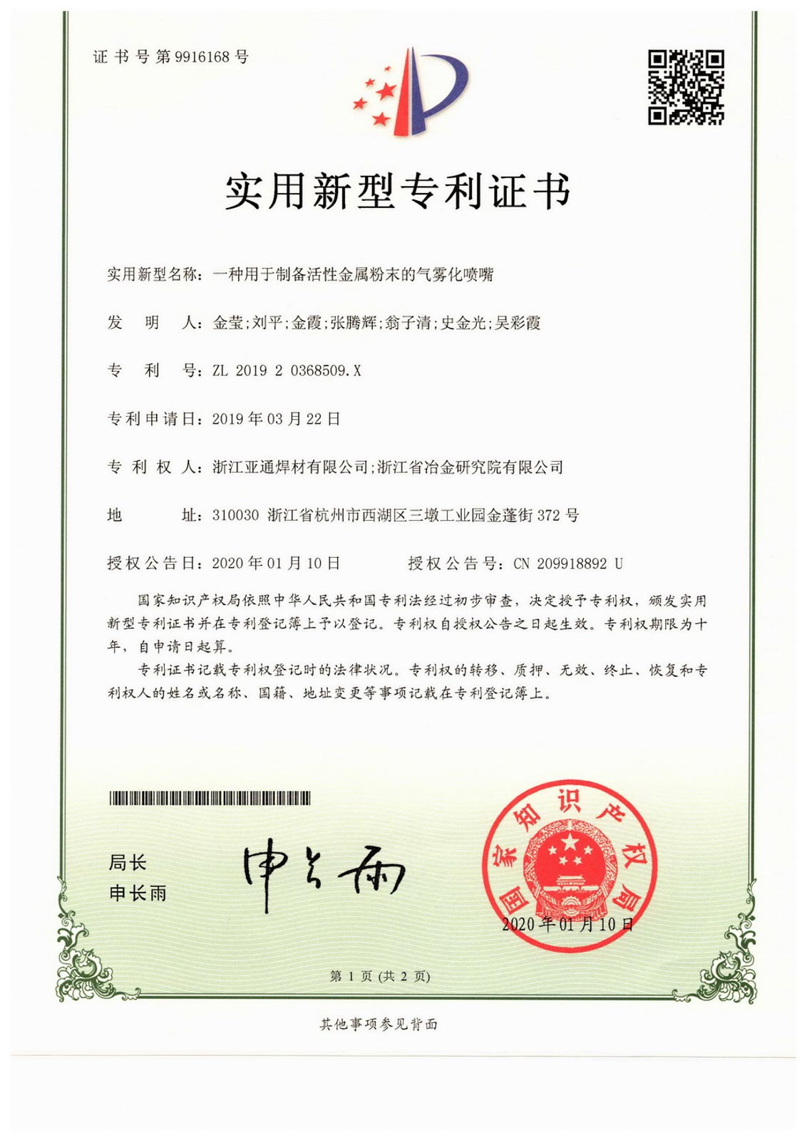 2016年4月,經省科技廳、省發改委、省經信委、省財政廳批準,浙江亞通新材料股份有限公司作為先進釬焊材料產業技術創新的綜合試點單位,組建浙江省亞通先進釬焊材料重點企業研究院,2020年12月建成并對外開放。